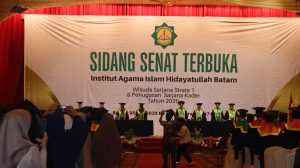 BATAM — Institut Agama Islam (IAI) Hidayatullah Batam menggelar Sidang Senat Terbuka Tahun Akademik 2024/2025 bertempat di Aula Lantai 6 Hotel Harmoni One, Batam, pada Sabtu, 9 Muharram 1447 (5/7/2025).